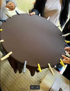 Figura 8: La curvatura dello spazio-tempo nel modellino in cartone.