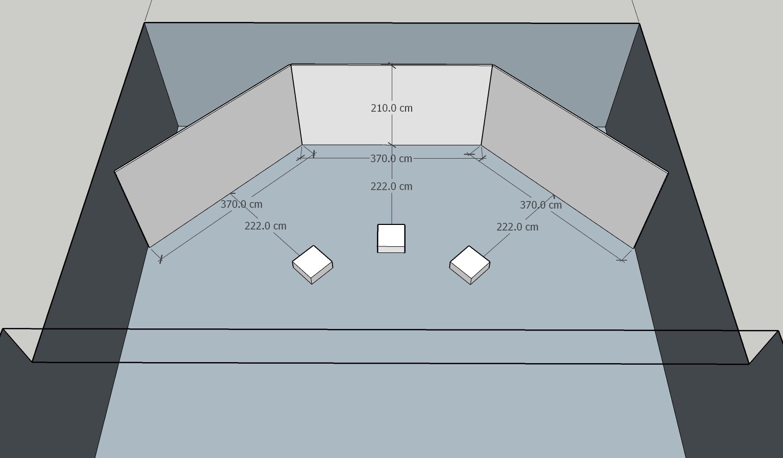 Il video è stato realizzato per una installazione al Festival della Scienza di Genova composta da tre pannelli di 370 x 210 centimetri ciascuno, disposti a trapezio secondo lo schema seguente. I proiettori sono a ottica corta, fullHD.